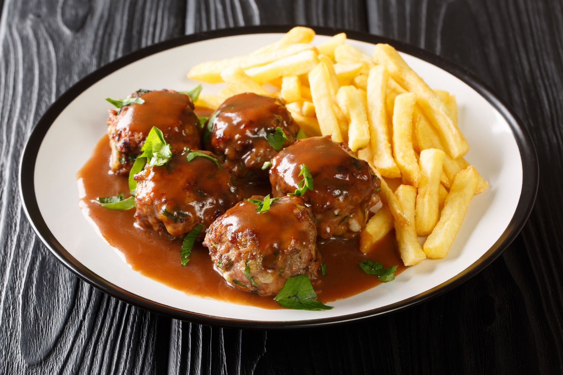 Servez les boulets liégeois chauds, accompagnés de frites ou de purée de pommes de terre. Bon appétit !